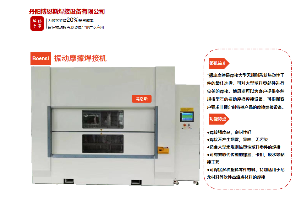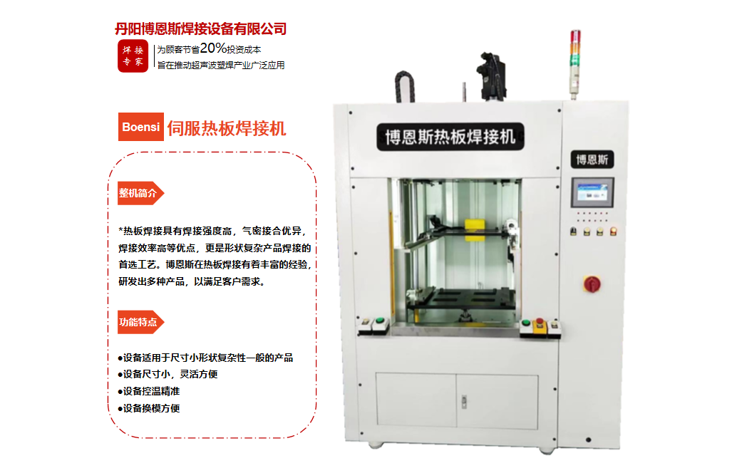丹陽博恩斯焊接設備有限公司是塑料焊接領域集研發(fā)設計、生產(chǎn)制造、銷售服務為一體的企業(yè)。公司自成立以來堅持“以人為本”的理念,組織了一支強大的技術研發(fā)團隊,攜多年來積累的豐富經(jīng)驗,并結(jié)合國際先進塑料焊接技術,根據(jù)市場需要,不斷開發(fā)具有核心競爭力的新產(chǎn)品。公司具有很強的非標機械研發(fā)、設計、生產(chǎn)能力,可為廣大客戶定制各類專用機械設備。公司設計生產(chǎn)的塑料焊接設備已廣泛應用于汽車、電子、家電、醫(yī)療器械、無紡布...